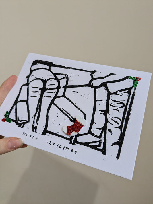 Handmade lino printed Christmas card - Design 2
