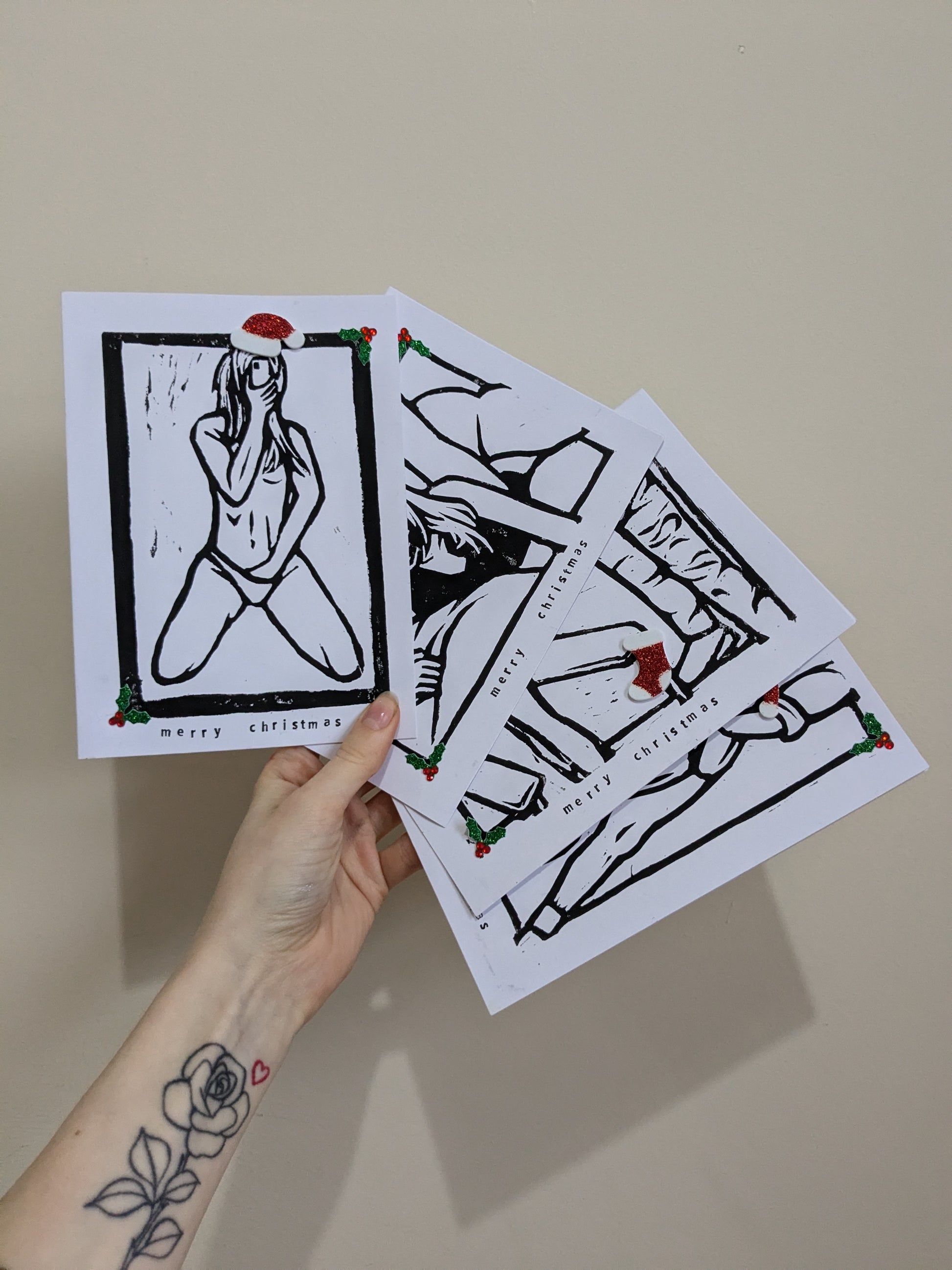 Original handprinted lino print christmas card, all vary slightly as they are handprinted. 5x7inches.