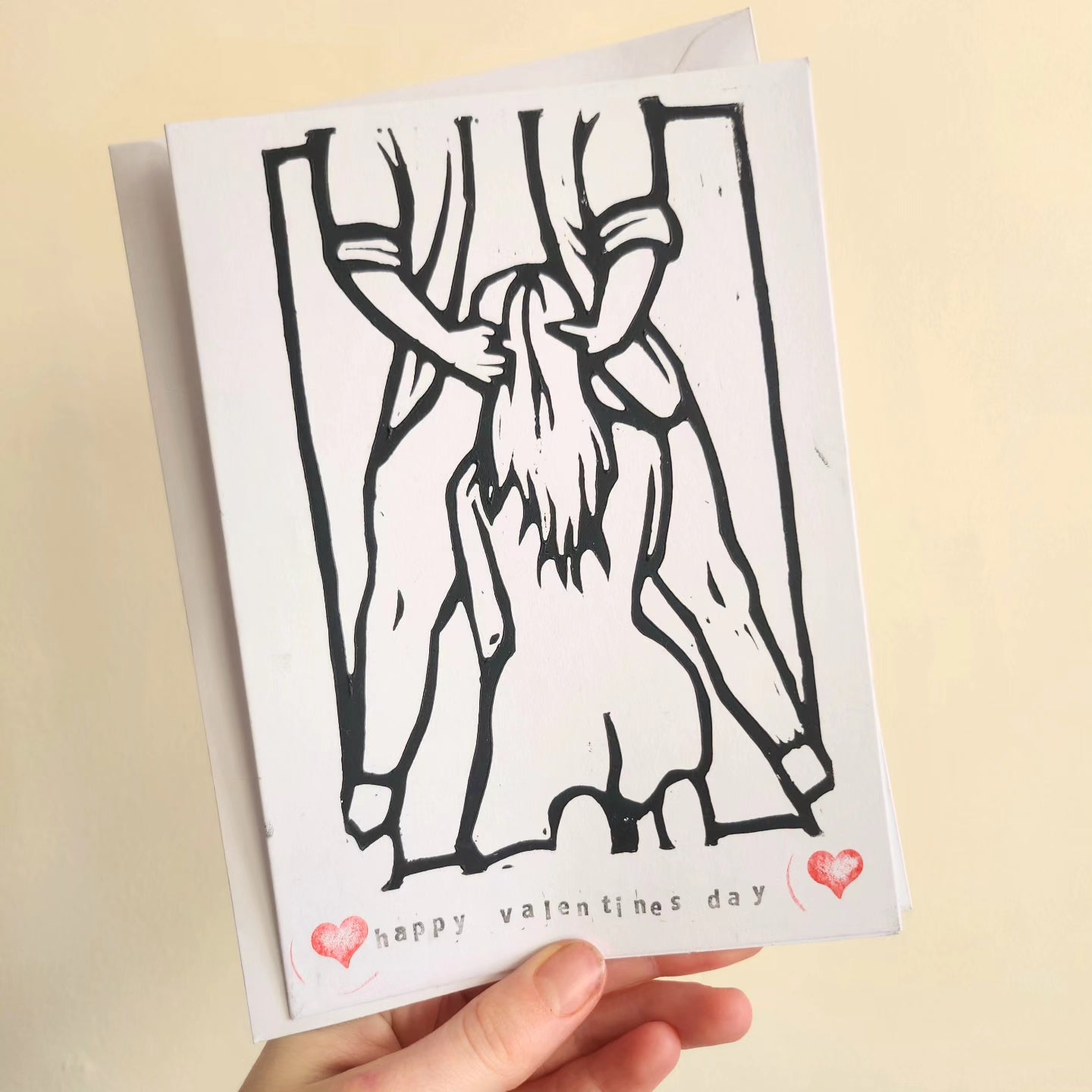 Original handprinted lino print valentines card, all vary slightly as they are handprinted. 5x7inches.
