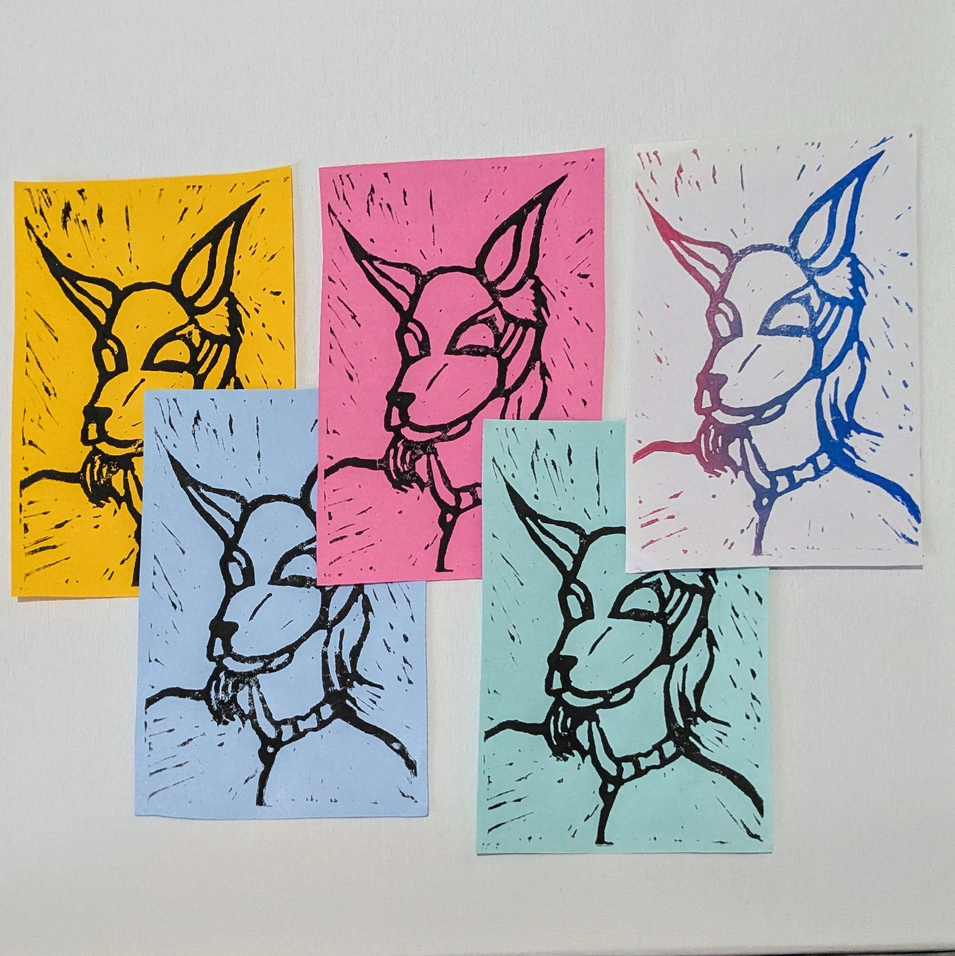 Original lino prints, all vary slightly as they are handprinted. Approx 11.5cmX16.5cm