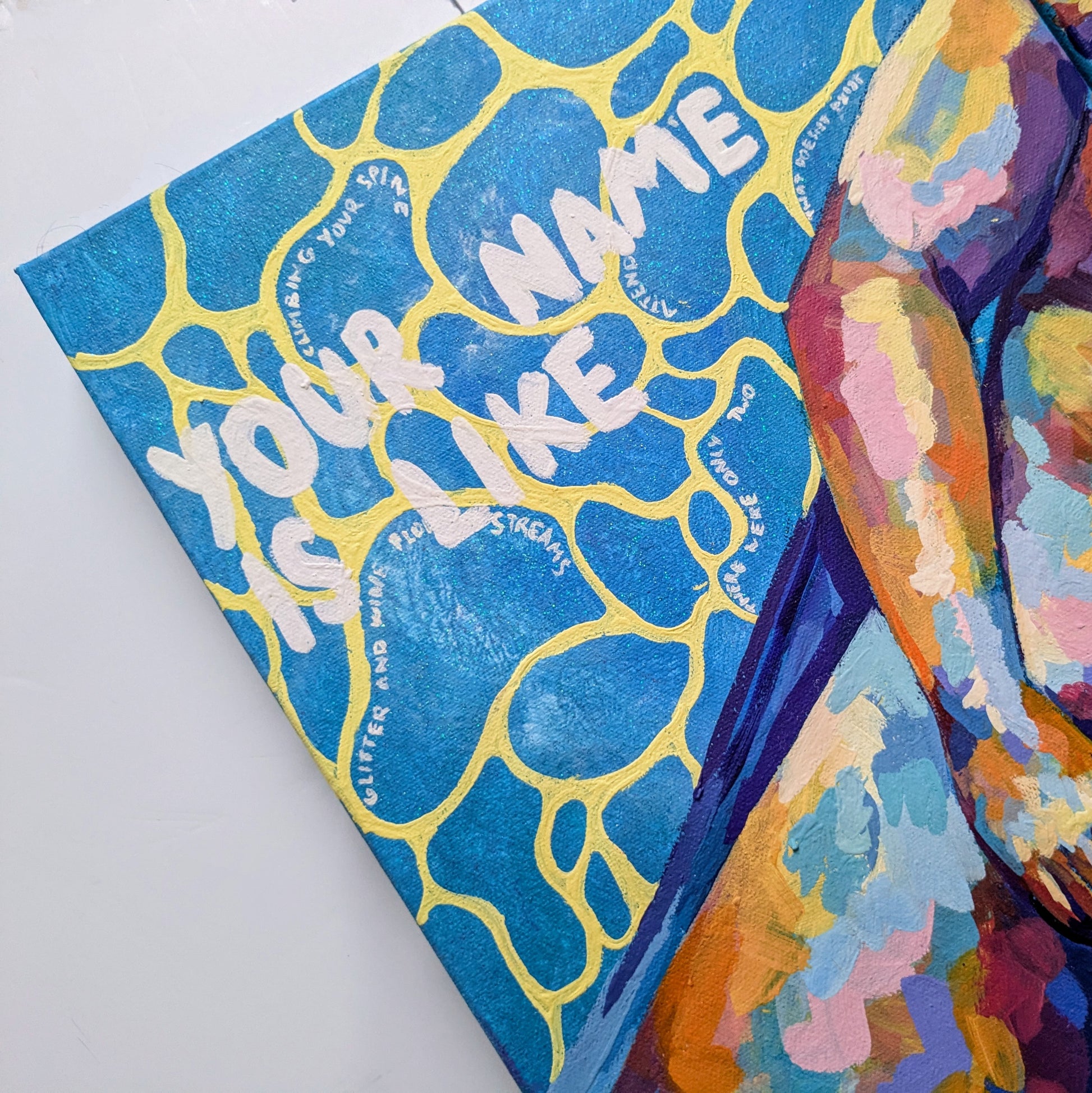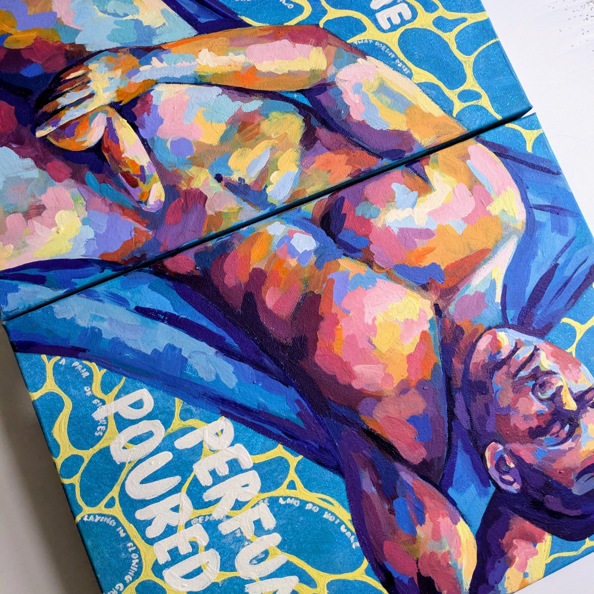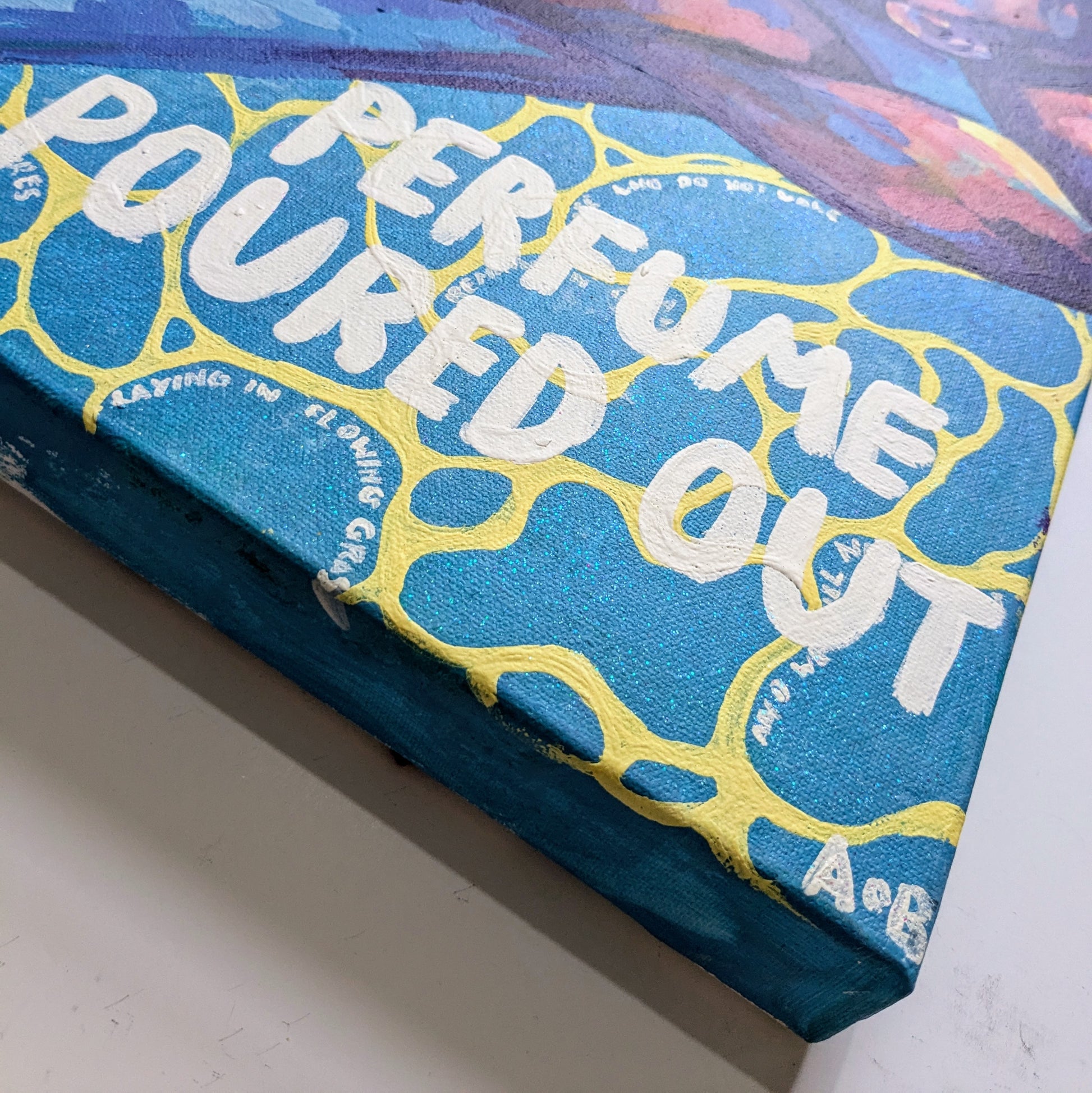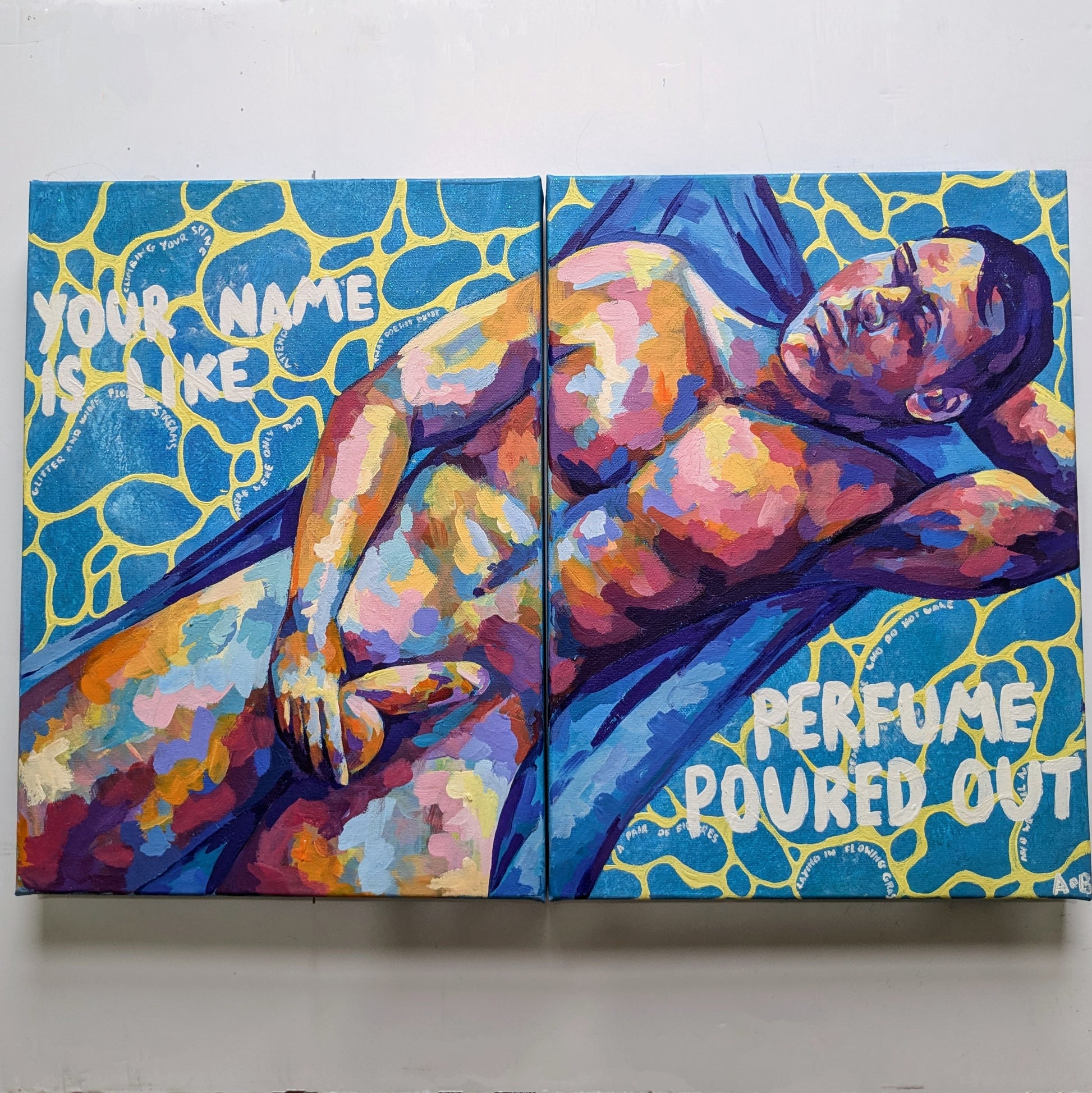 One of my original paintings called 'Your name is like perfume poured out' across two canvases