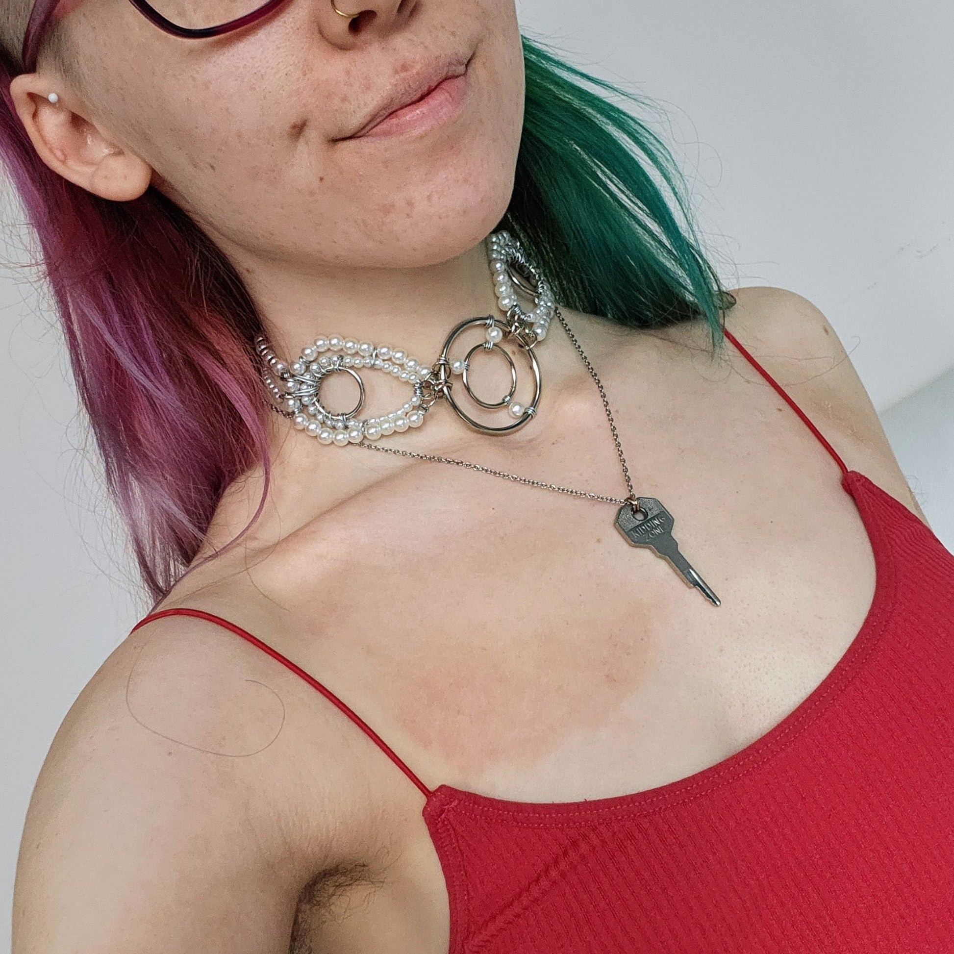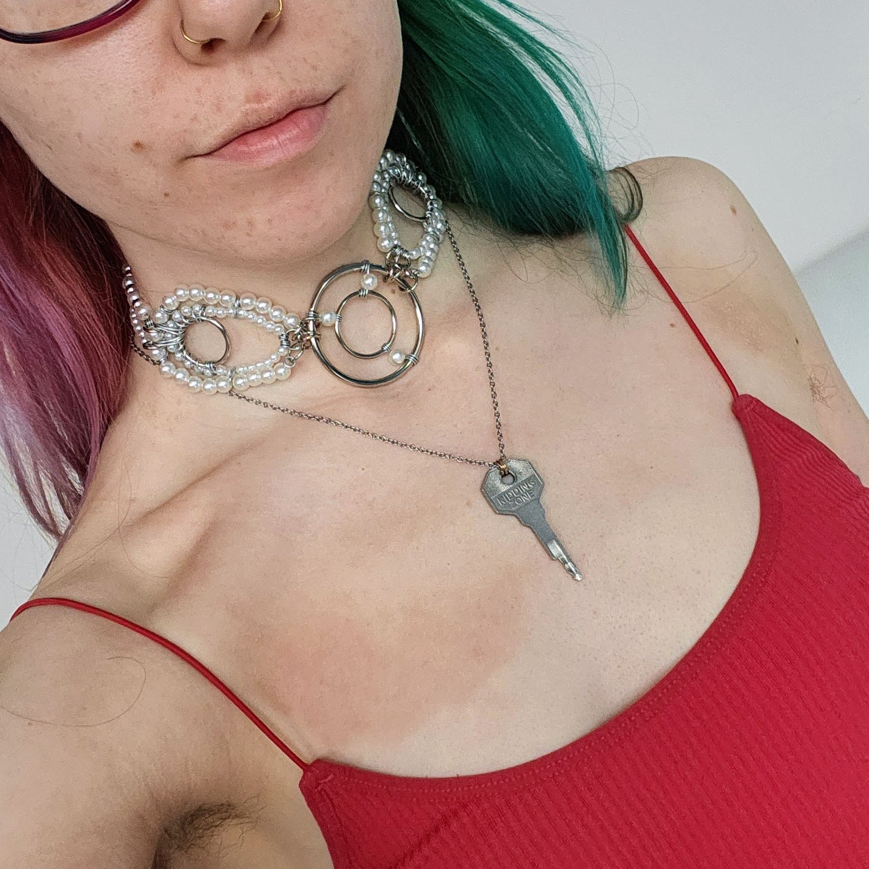 'Canary' Handmade pearl bead collar - White pearl beads/silver findings