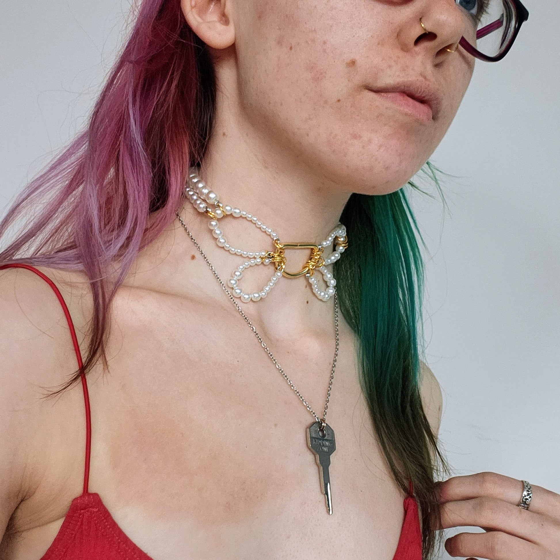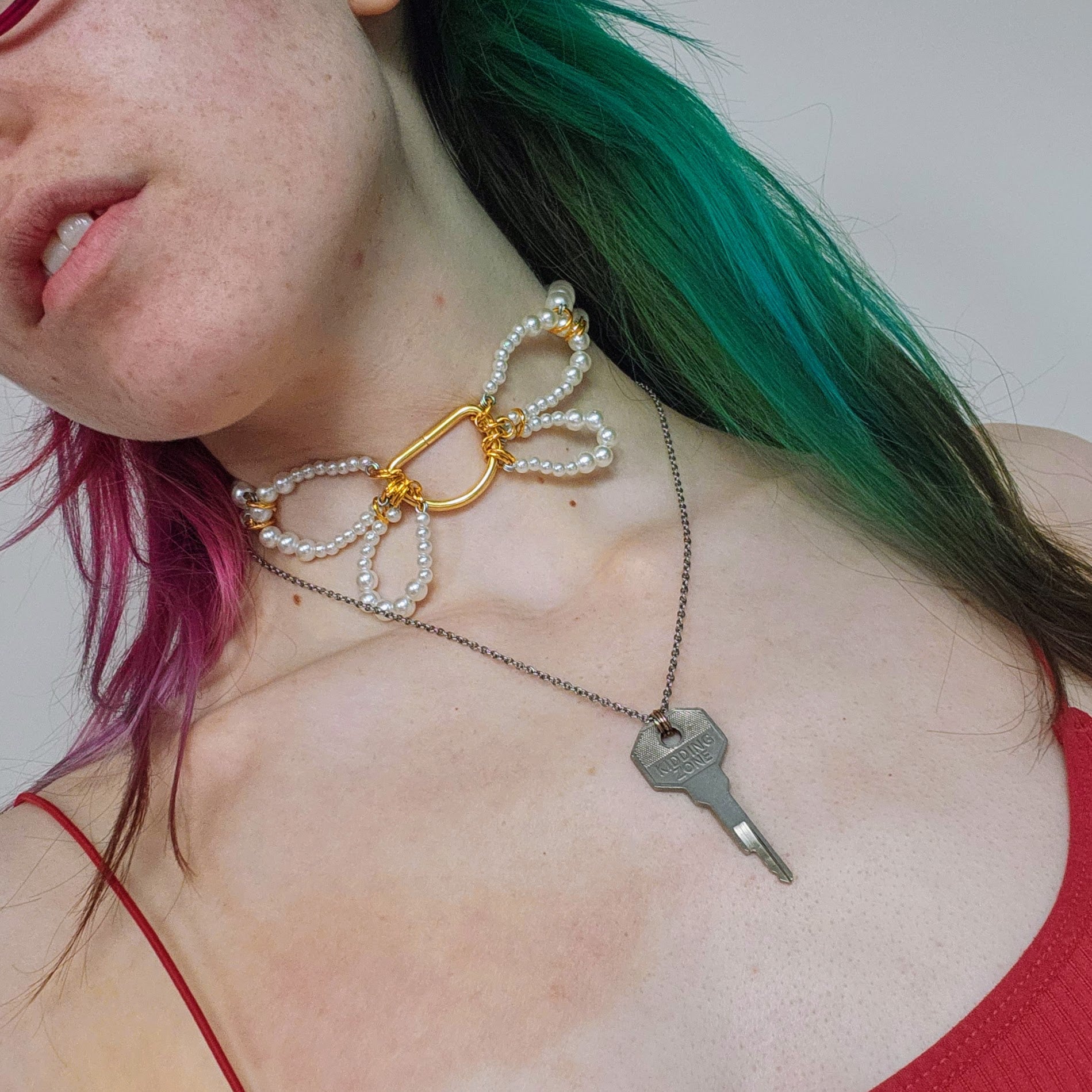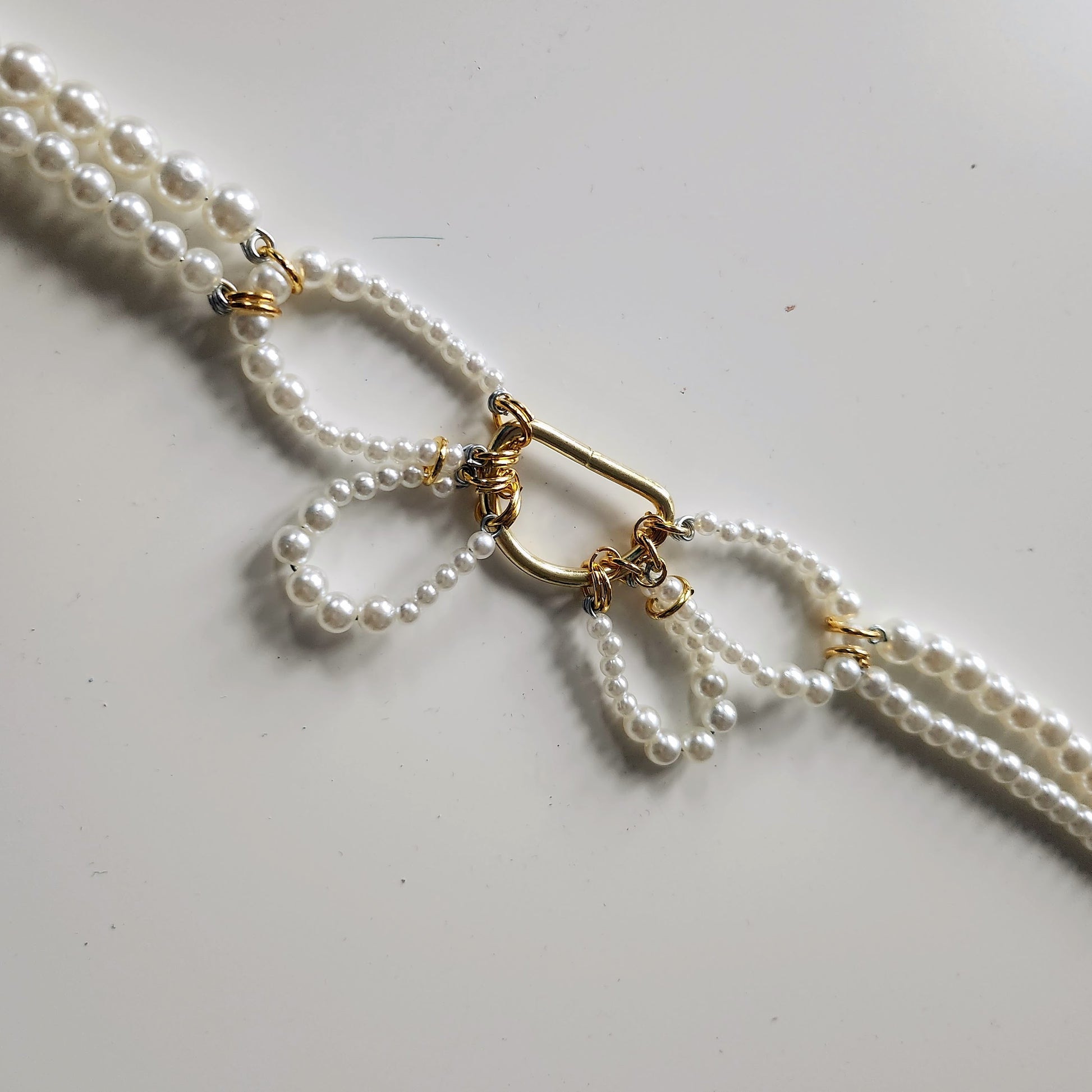 'Butterfly' Handmade pearl bead collar - White pearl beads/gold findings