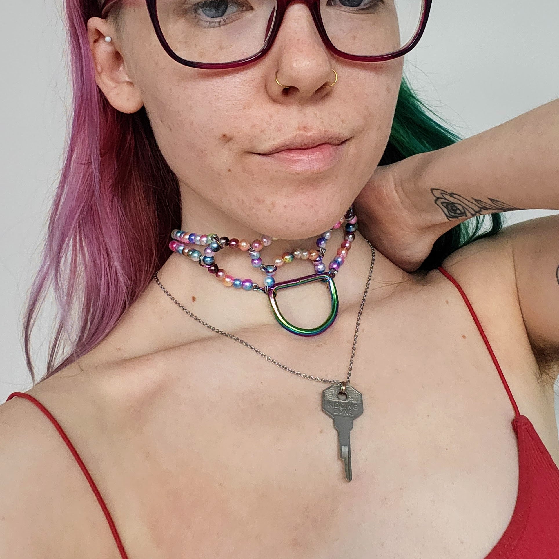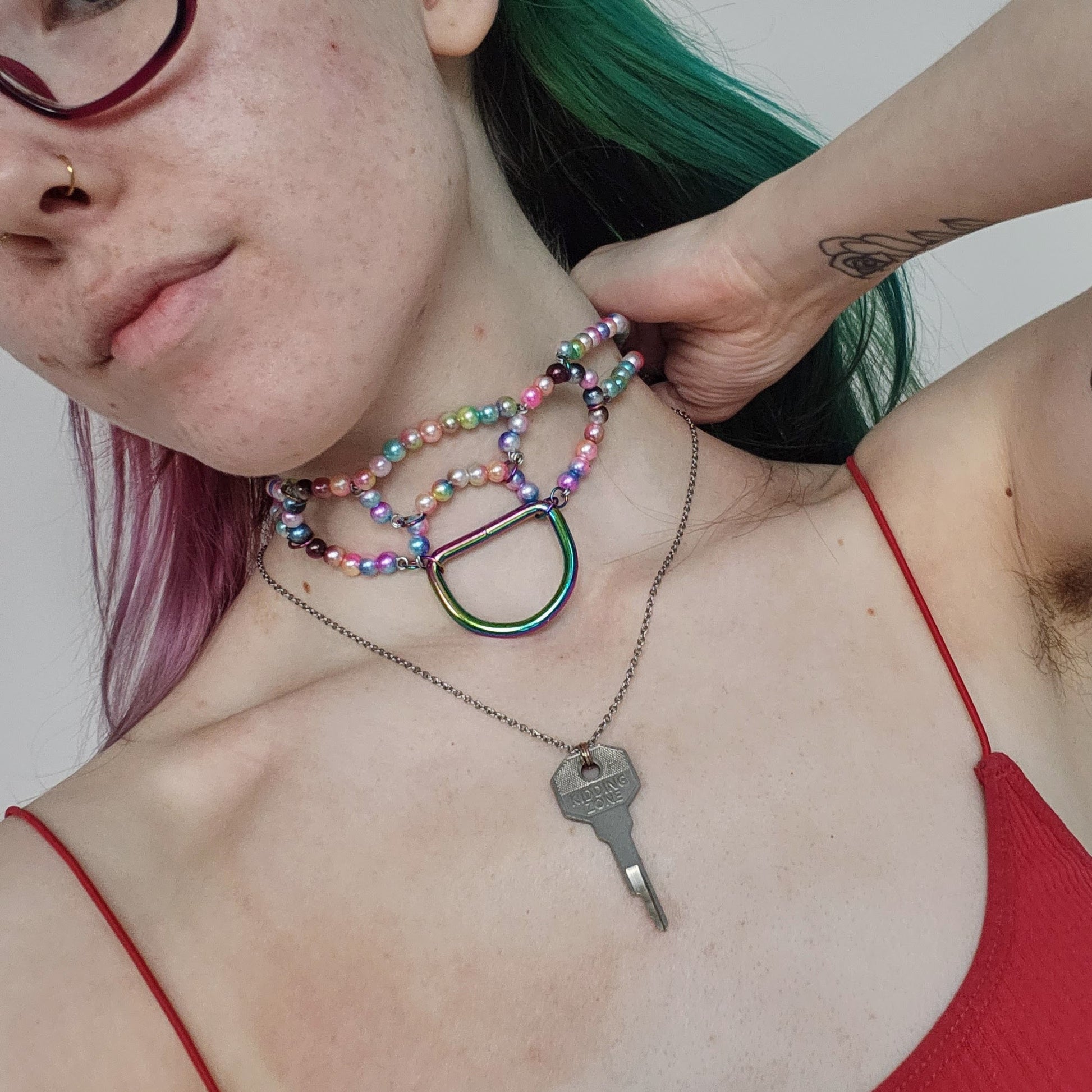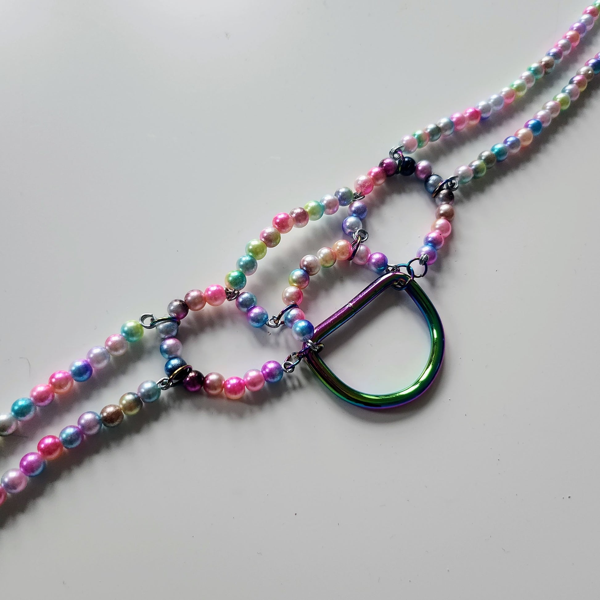 'Two' Handmade pearl bead collar - Rainbow pearl beads/rainbow toned findings