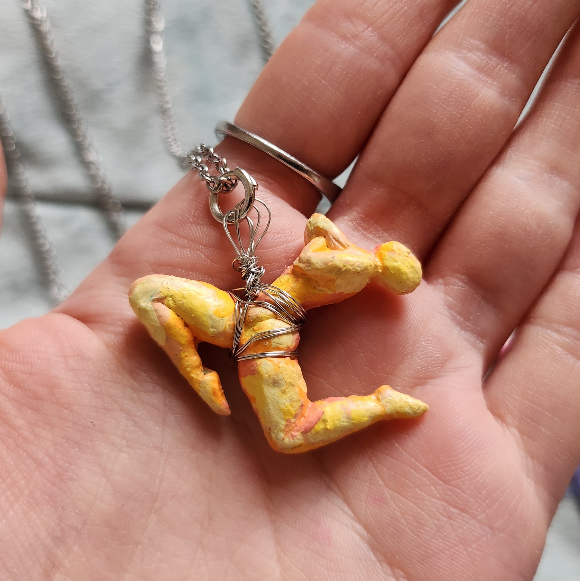 Handsculpted wire wrapped shibari suspension necklace with silver tone findings.